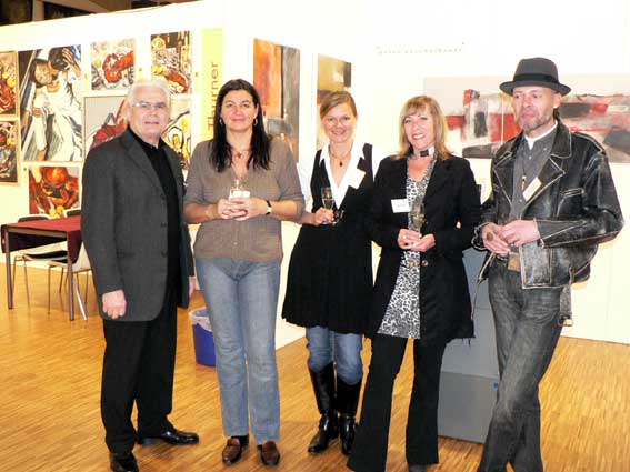 Unsere KünstlerInnen-Gemeinschaft NIKK (Niederösterreichische Kunst und Kulturbörse) v.l. Anton Guschelbauer (D), Katherine Thurner (A), Claudia Renetzeder (A), Gabriele Götz (A), Marc Reibel (D) nicht im Bild Michael Öffler (D), Traudi Weiss (F) |